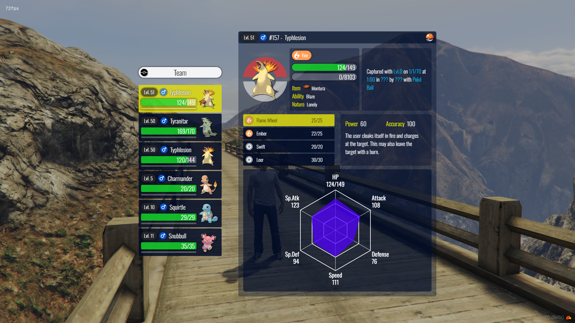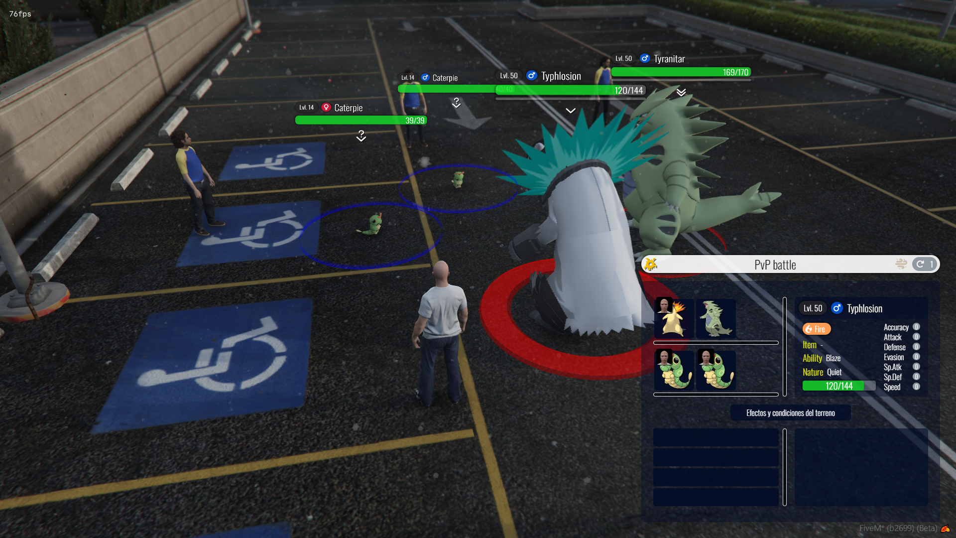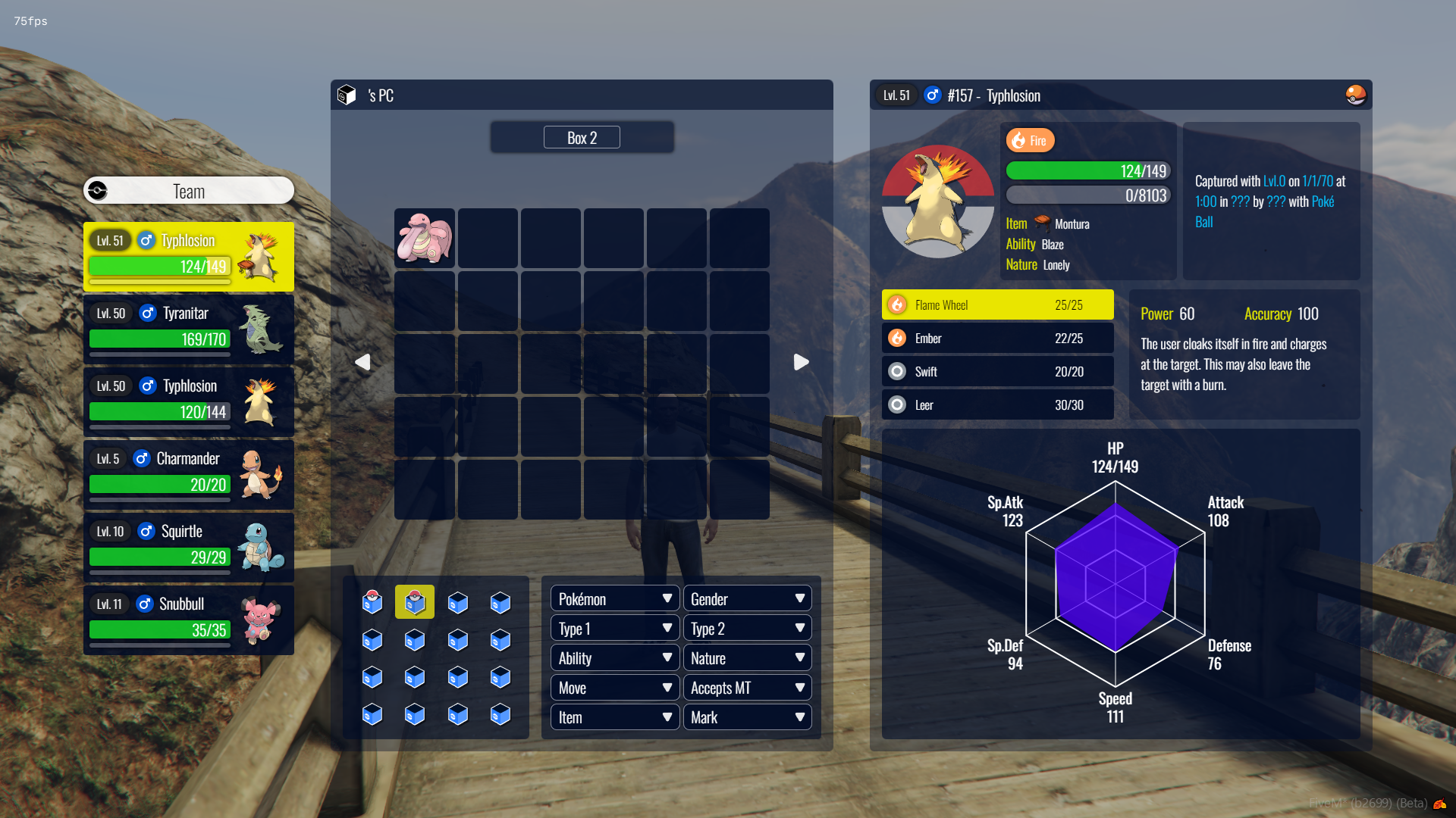 Fivemon includes all the essential mechanics needed for modern Pokémon gameplay, including stats like EVs, IVs, natures, and abilities. Pokémon can evolve, level up, and participate in complex battles, all within a flexible and immersive system. We have pokemon up to the second generation included, but the mod itself supports up to the latest generations.